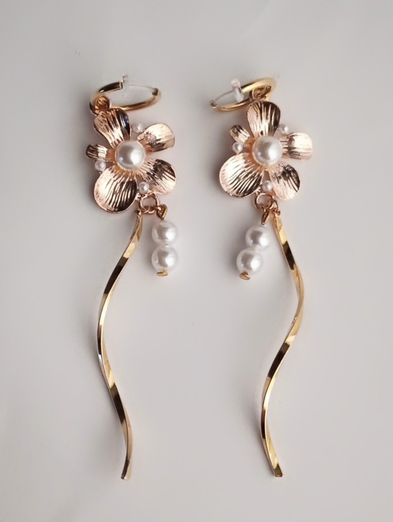 パールとなでしこの様に可愛いフラワーチャームとメタルウェーブが揺れる。
